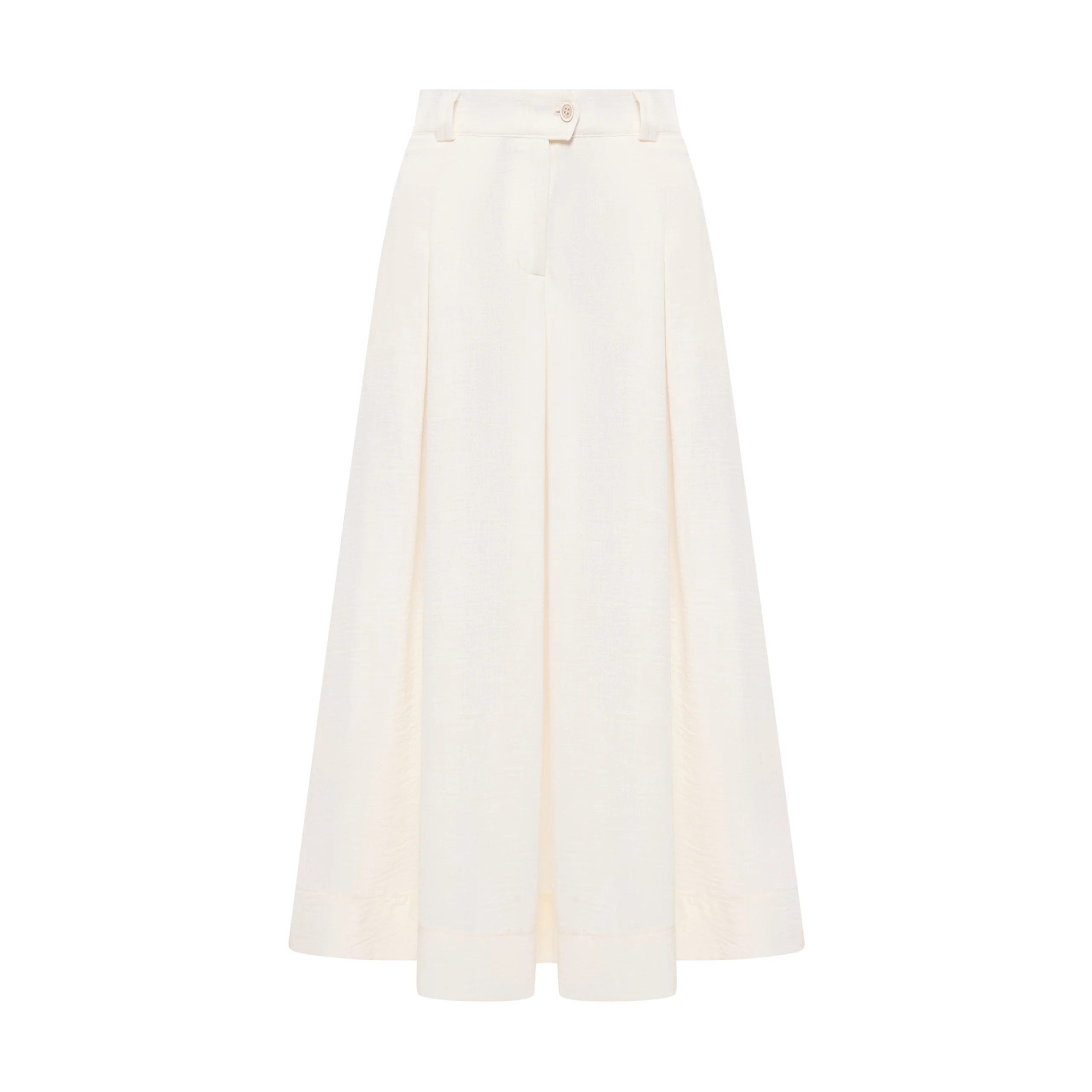 The trapezoidal silhouette and length of the midi further emphasize its lightness. The skirt has an elasticized waistband with an elastic band.