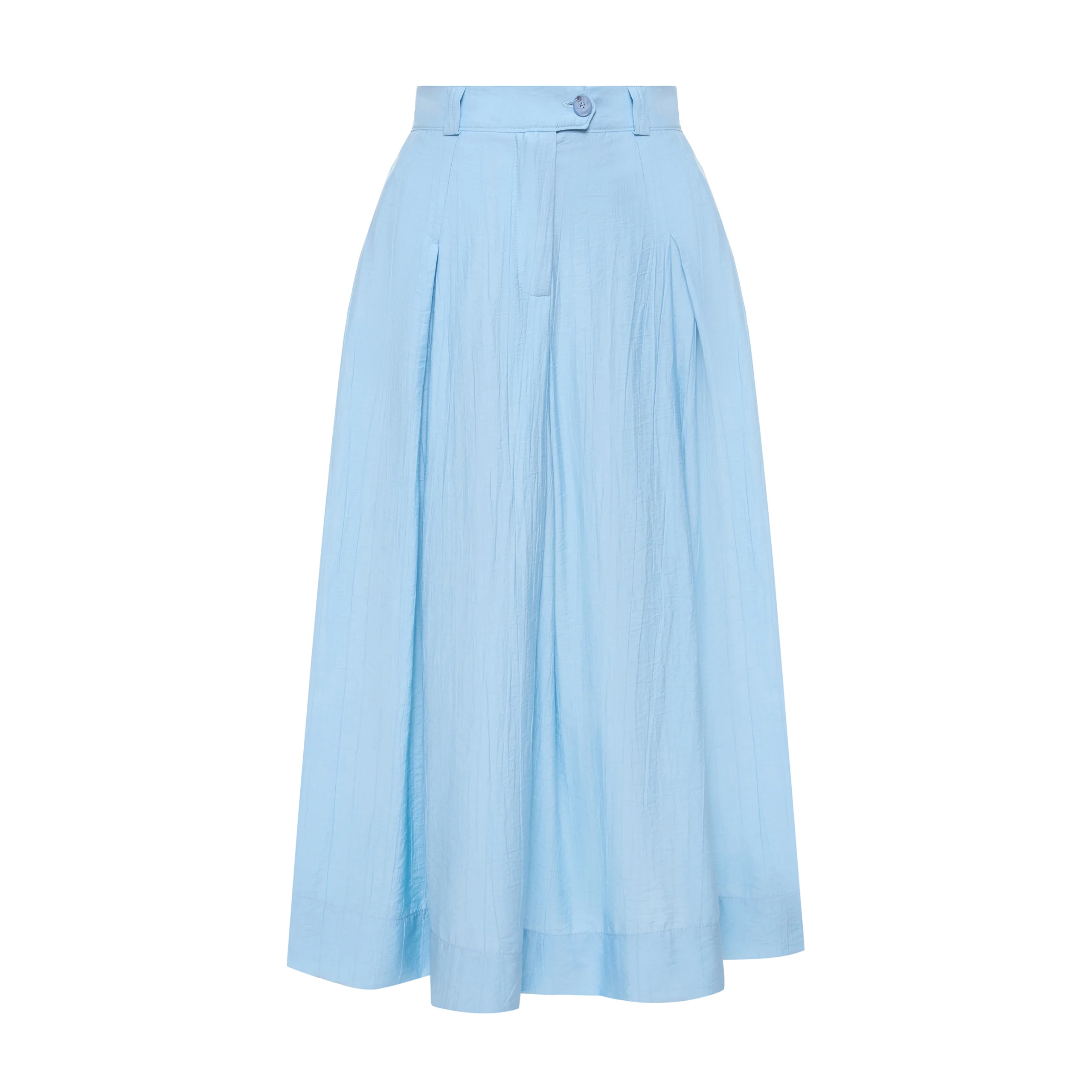 The trapezoidal silhouette and length of the midi further emphasize its lightness. The skirt has an elasticized waistband with an elastic band.