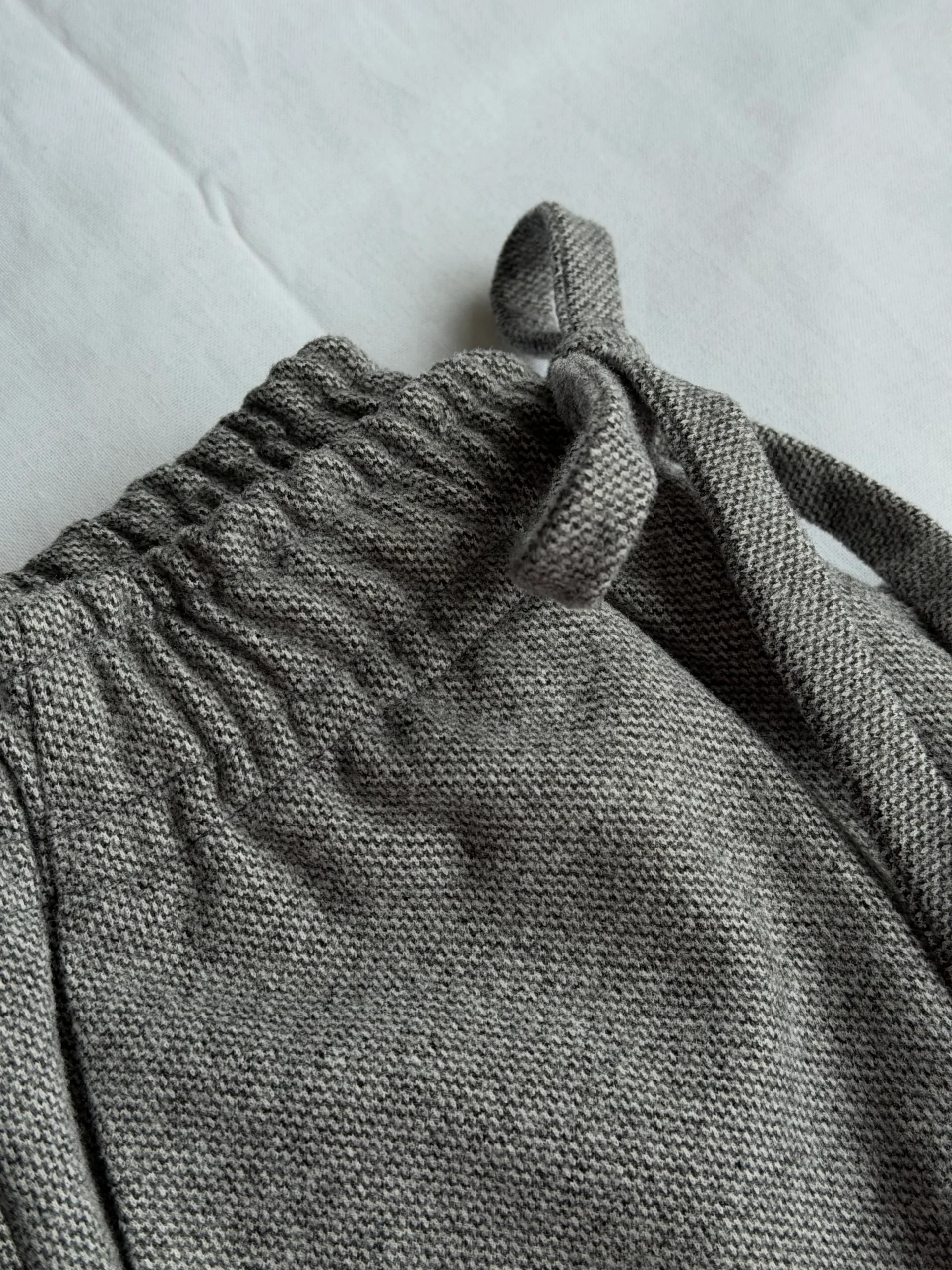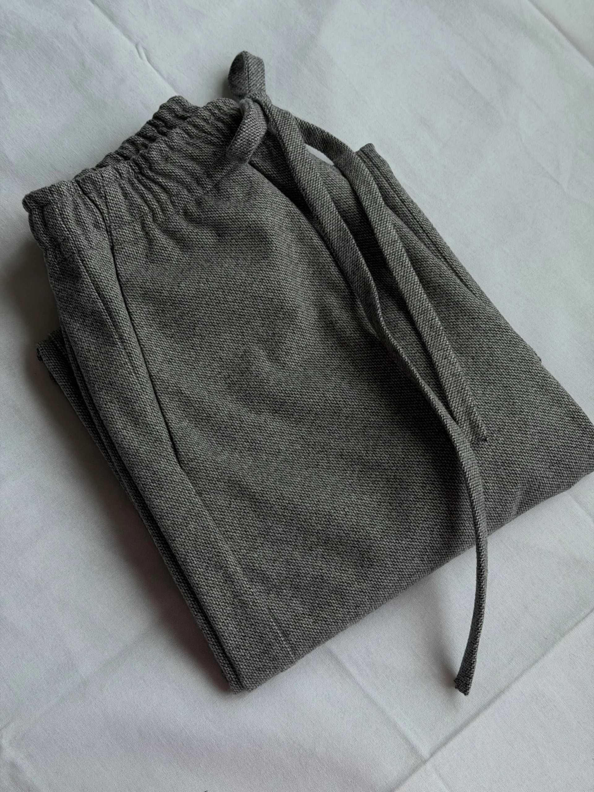 Straight long pants (bottom width 30 cm), elastic waistband thanks to an elastic band.