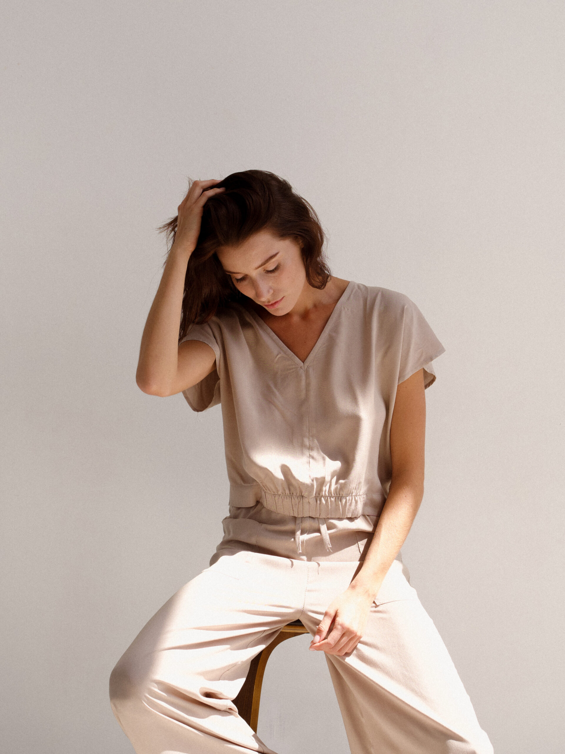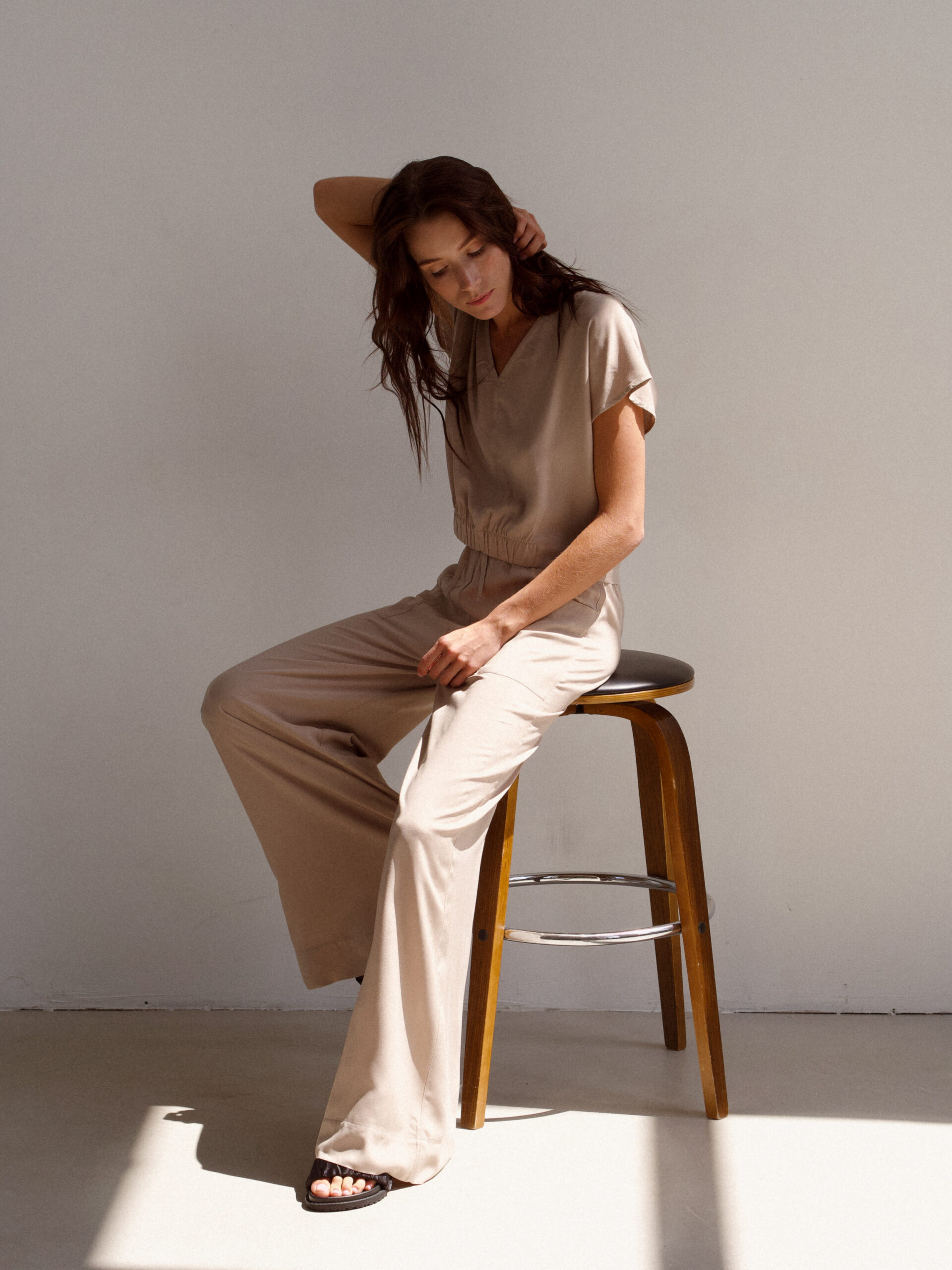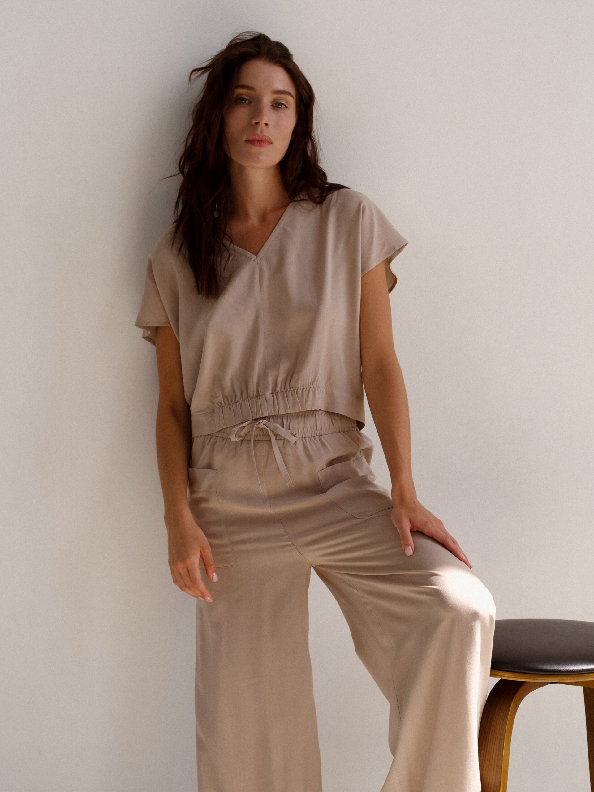 Summer pantsuit made of natural fabric.