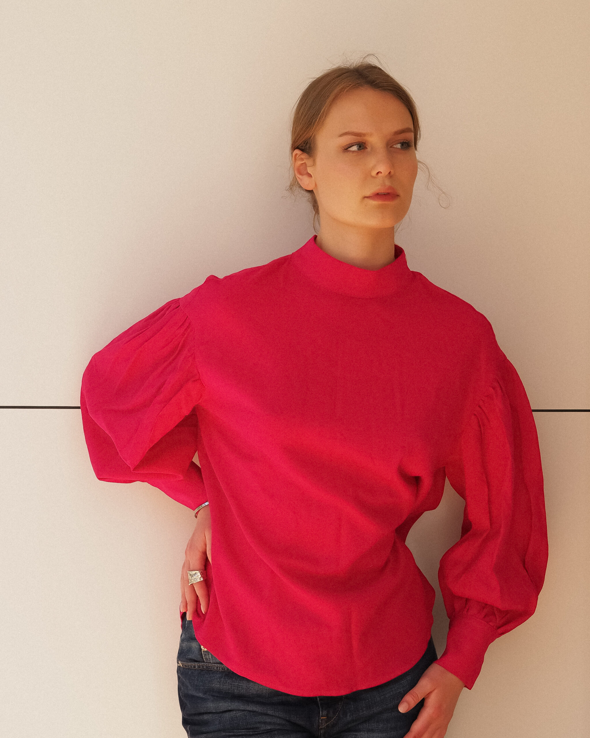 Широкий об”ємний рукав закінчується манжетою з застібкою на два гудзика.