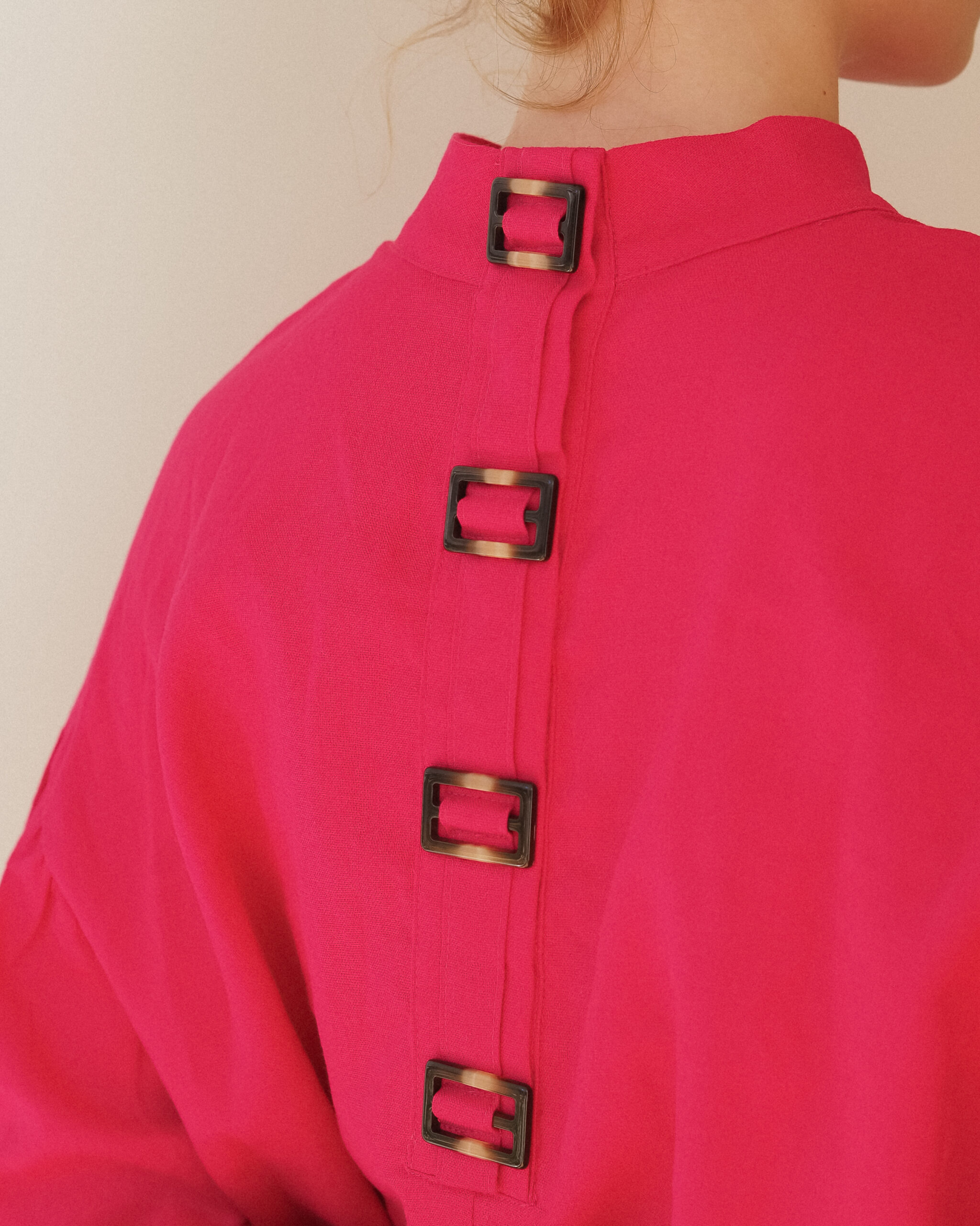 Комір-стійка з застібкою на спині на дві кнопки.