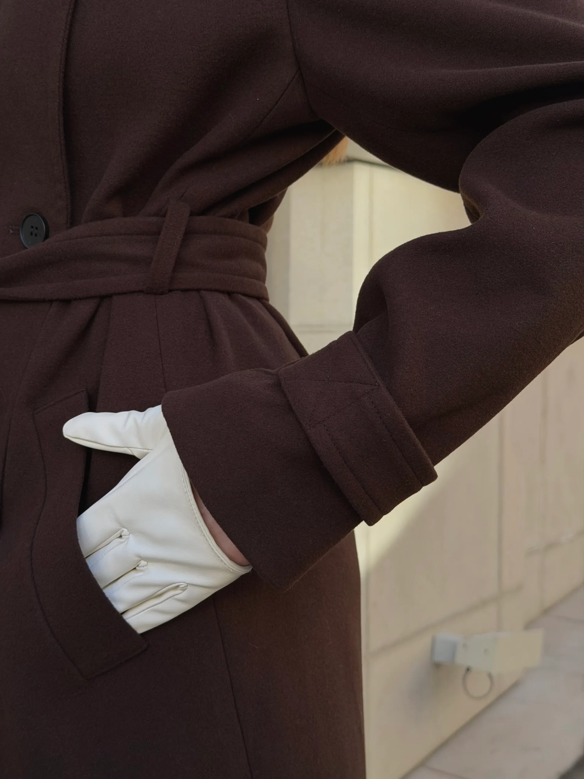 Двобортне пальто з застібкою на 4 ґудзика, з поясом та пряжкою до нього