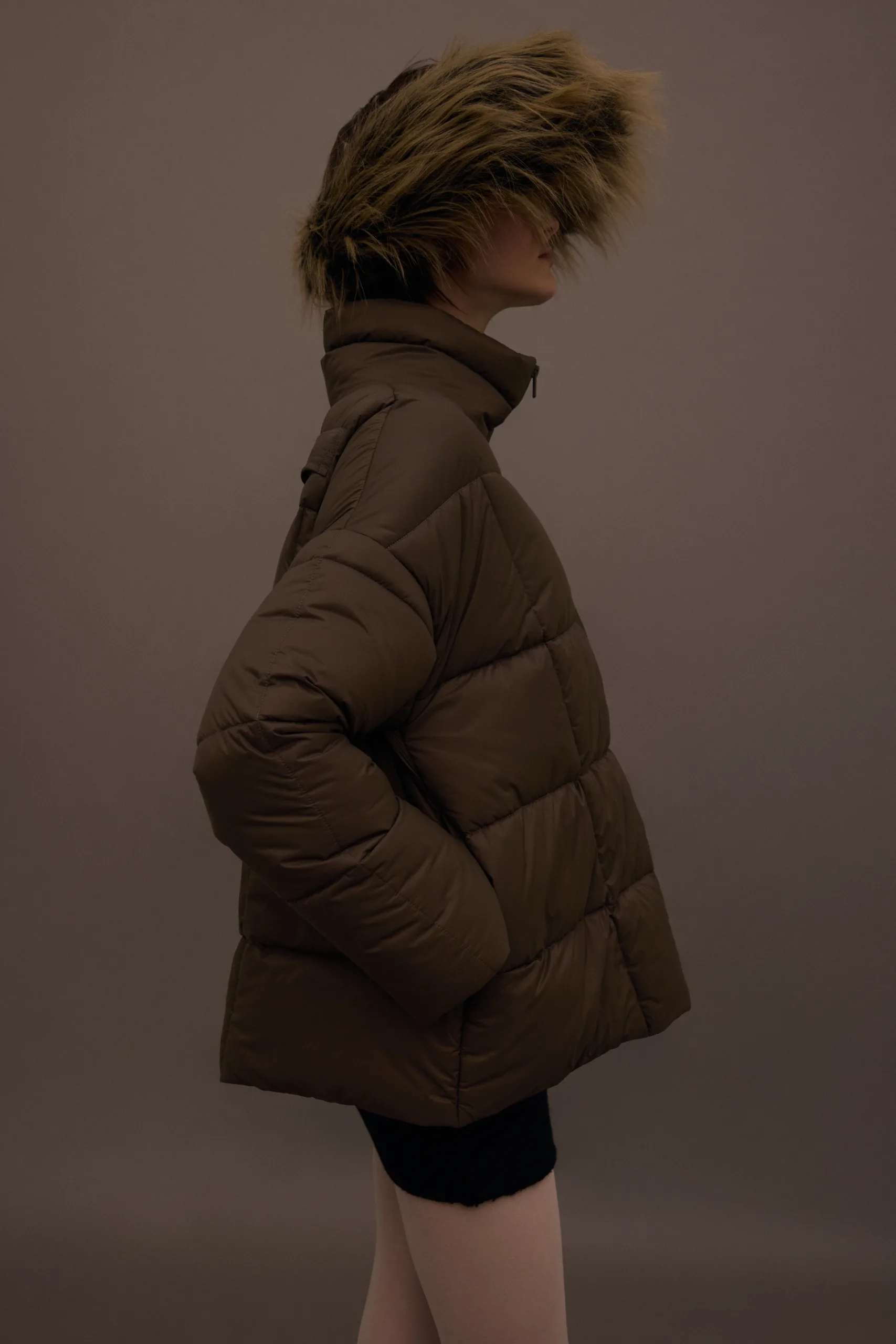 Пуховик із лаконічним мінімалістичним дизайном, створений для максимального комфорту в холодну погоду. Подовжений силует, м’які округлі лінії та об’ємний капюшон формують сучасний збалансований образ, що легко поєднується як із кежуал, так і зі спортивною естетикою.