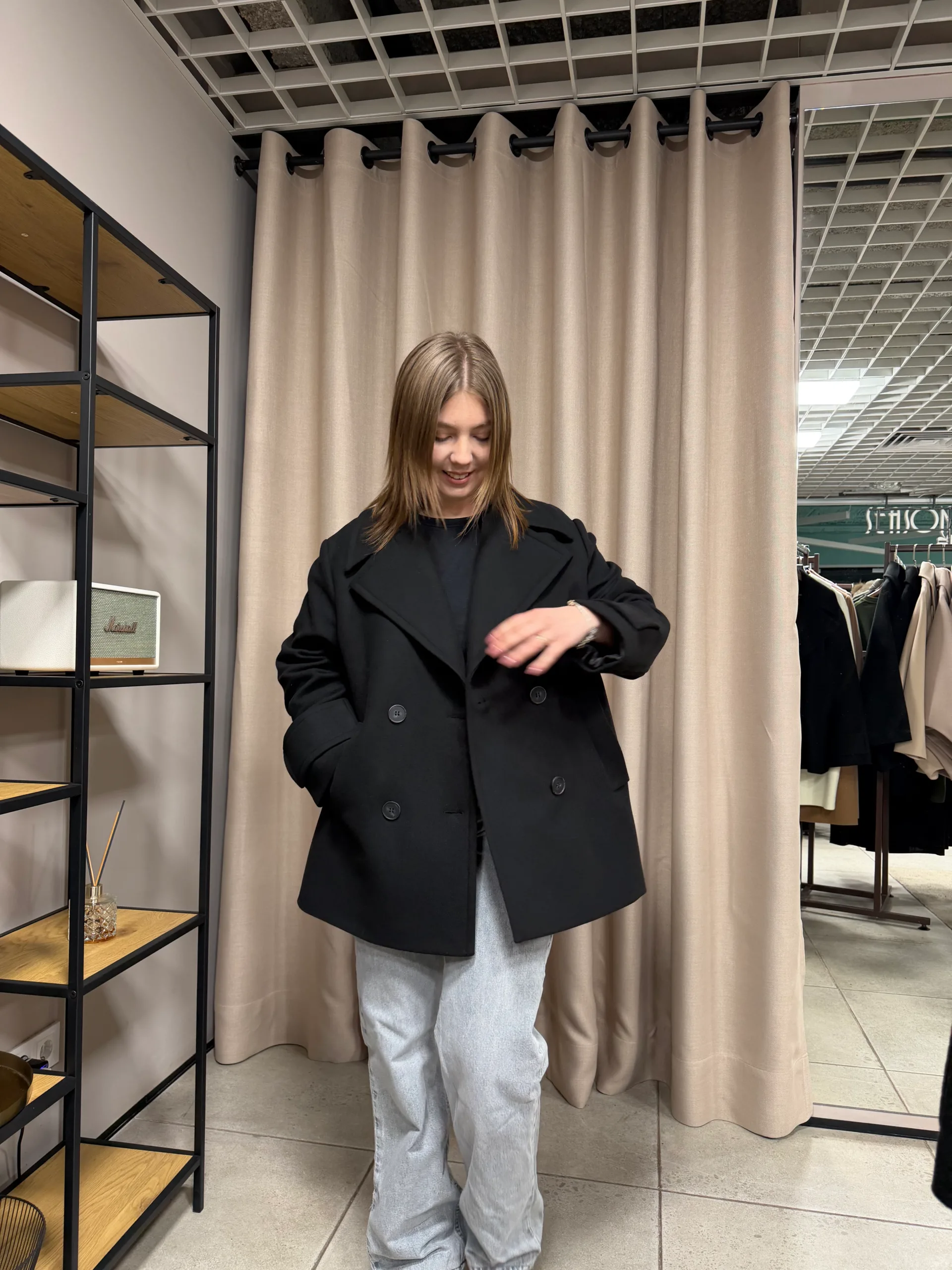 Двобортне демісезонне напівприлегле пальто з акцентними плечами із колекціі Boucle 24-25.