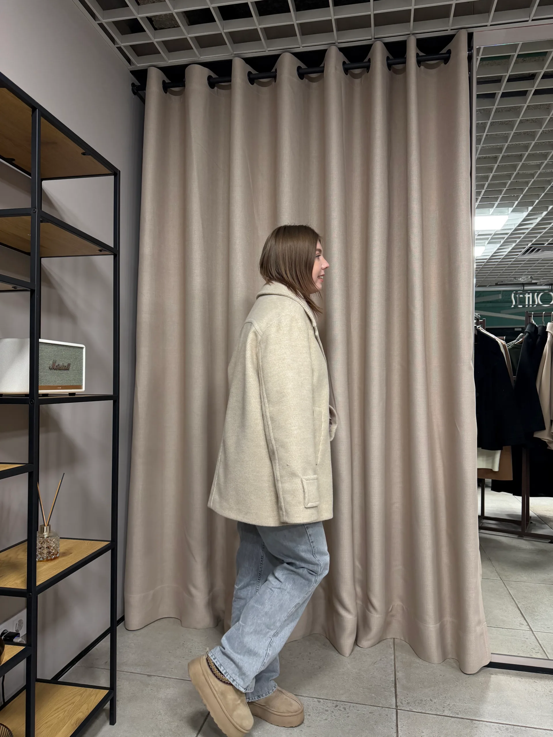 Виконана з пальтової тканини, яка добре тримає форму та забезпечує комфорт у прохолодну погоду.
