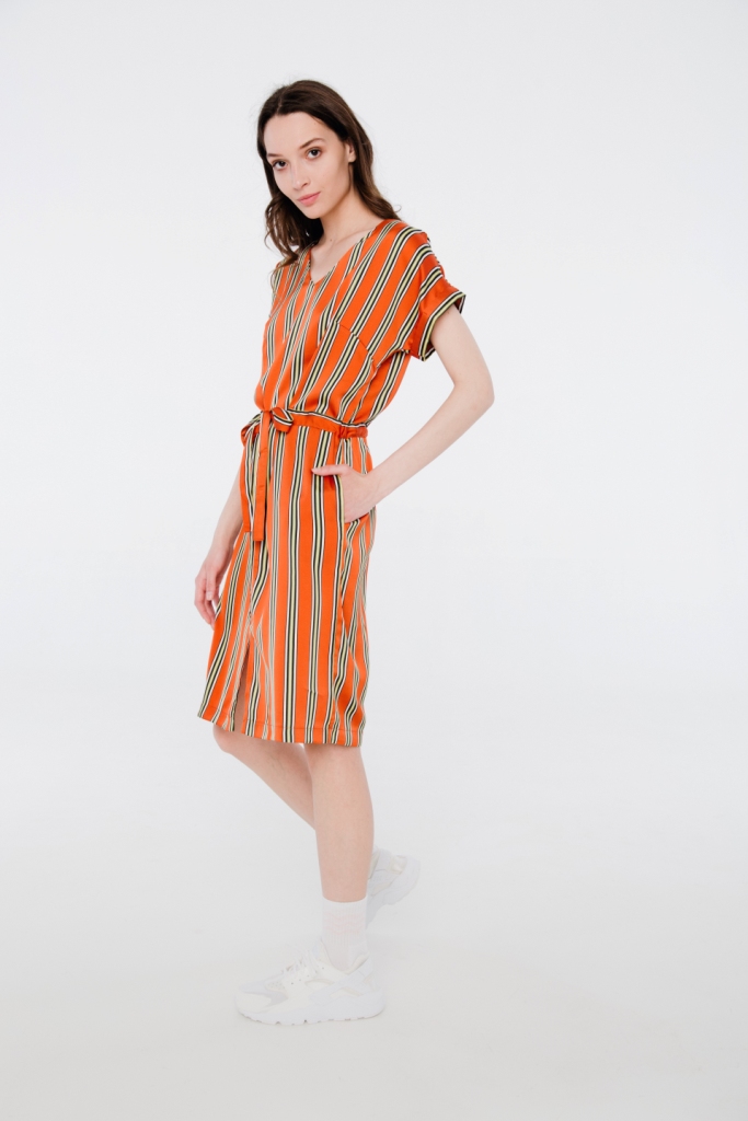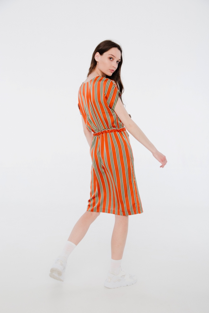 Сукня на підкладці, кишені в бічних швах.