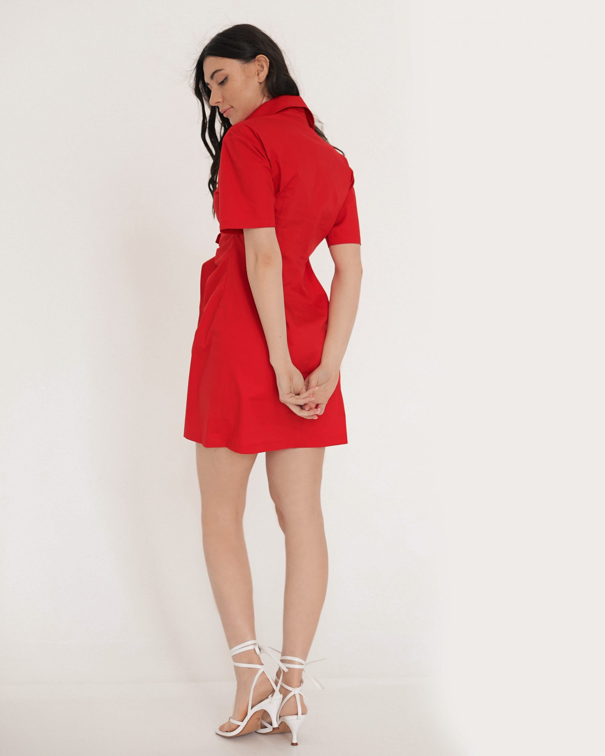 Сукня-сорочка з драпіровкою та вузлом – зав’язками на полочці.