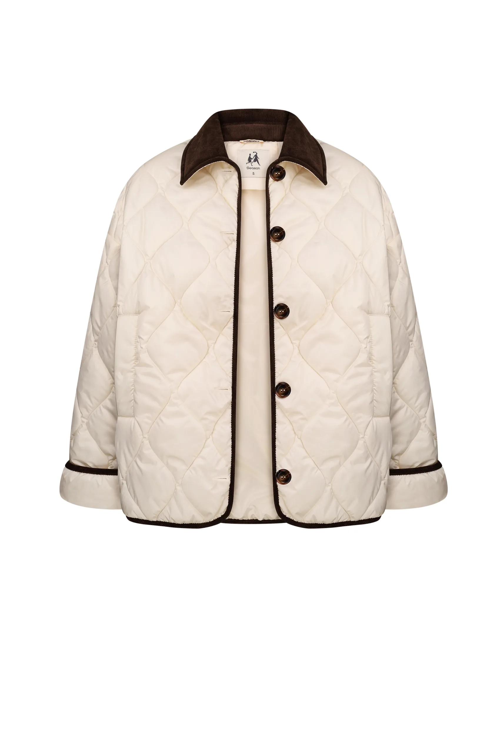 Пуховик-куртка однобортна, з застібкою на двосторонню блискавку, з коміром-стійкою та втачними рукавами з манжетом на еластичну стрічку (резинку). На полочці дві накладні кишені з накладним клапаном на дві кнопки. На лінії талії куліска з вдітим шнурком-мотузкою. До горловиникріпиться на блискавці з`ємний капюшон.