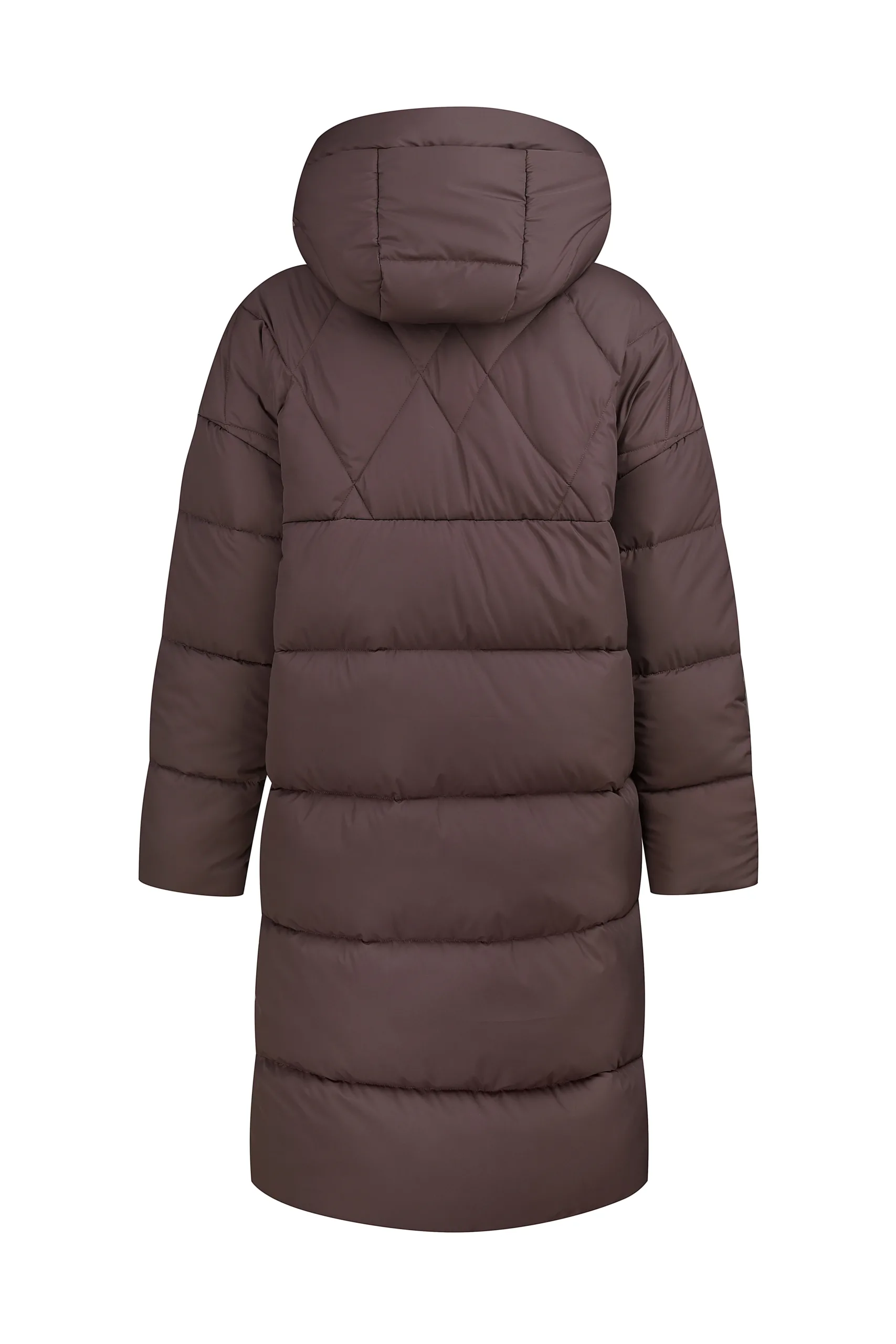 Чудове, довге, лаконічне стьобане пальто прямого крою під пояс з застібкою на потайних кнопках.