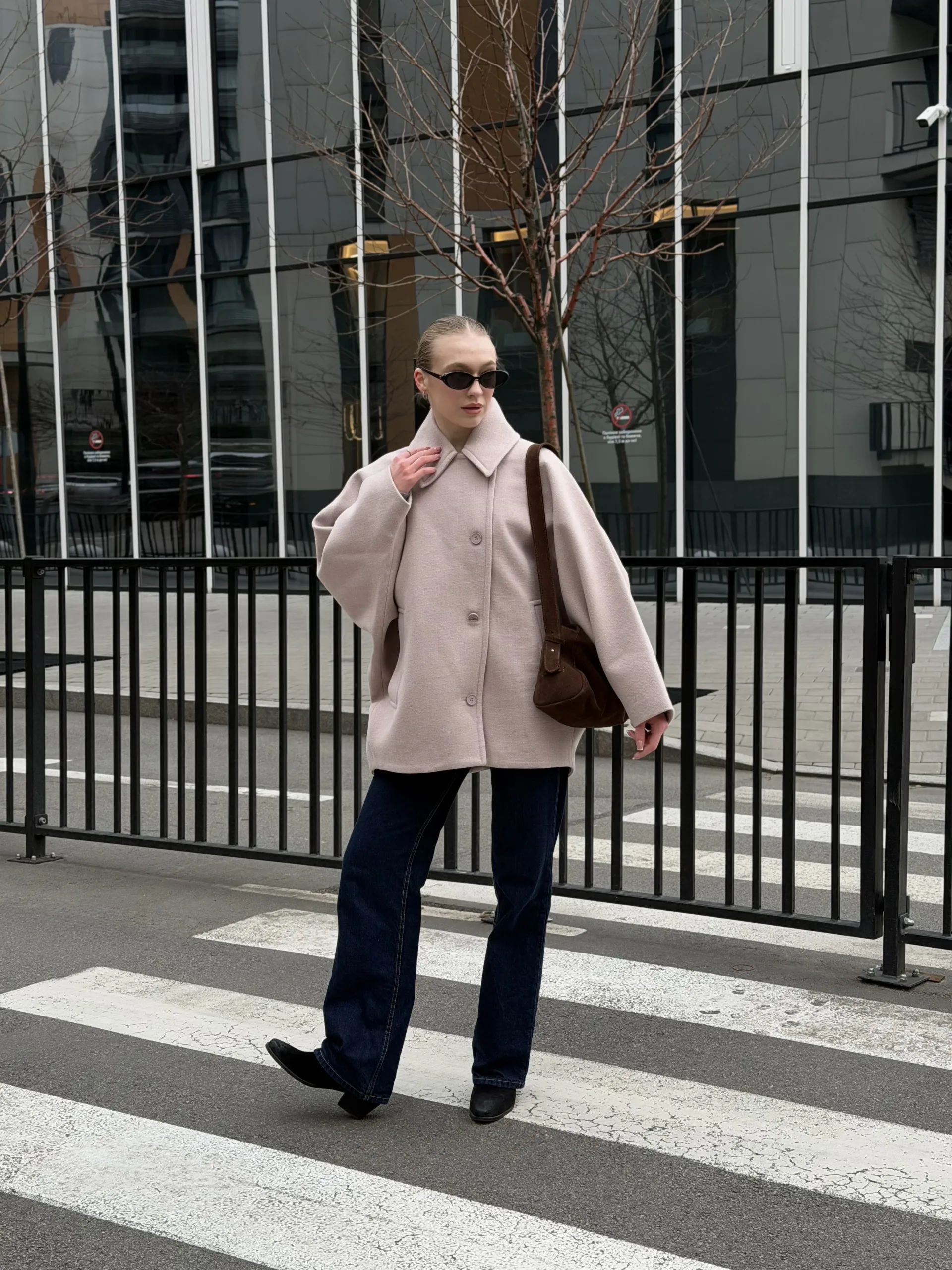 Двобортне демісезонне напівприлегле пальто з акцентними плечами із колекціі Boucle 24-25.